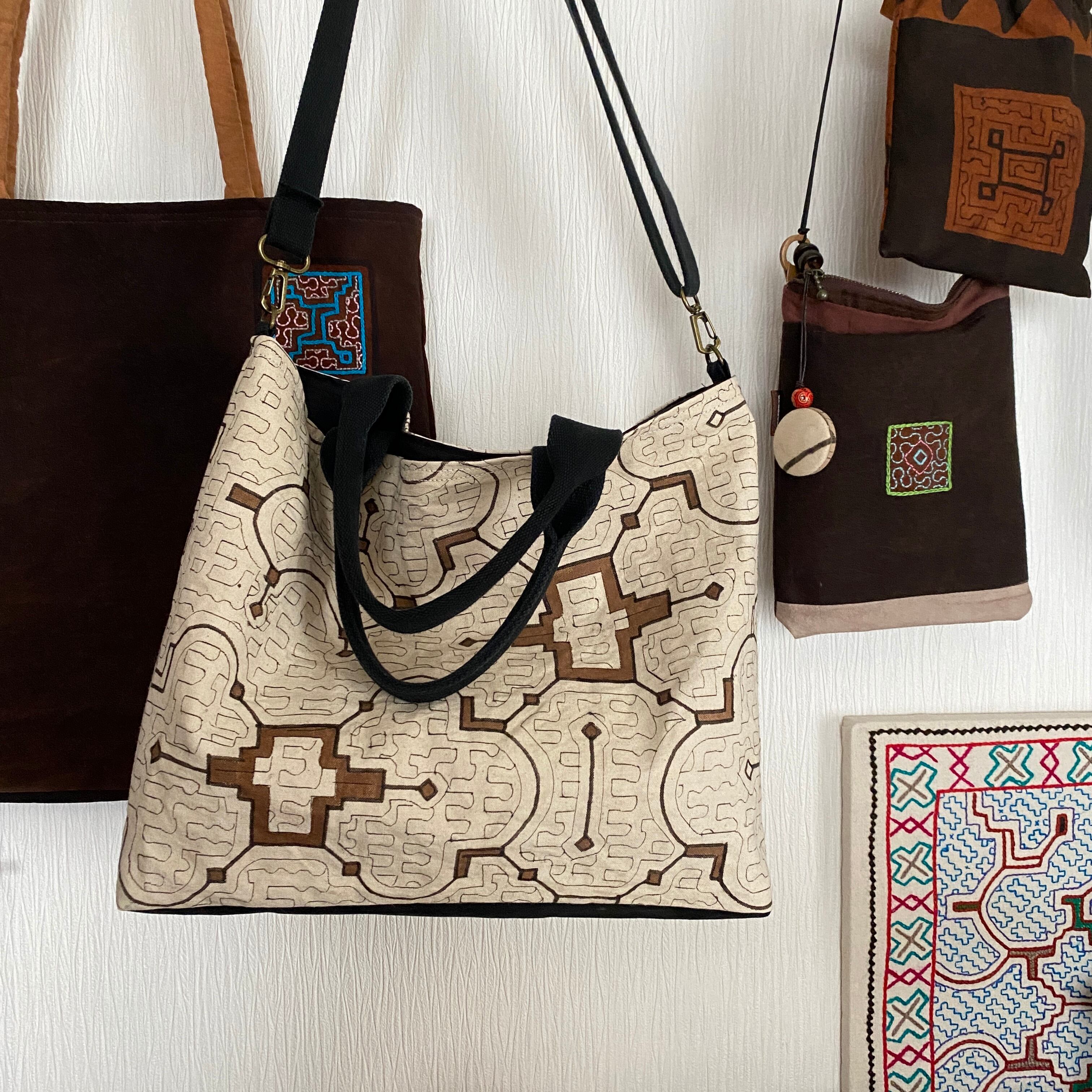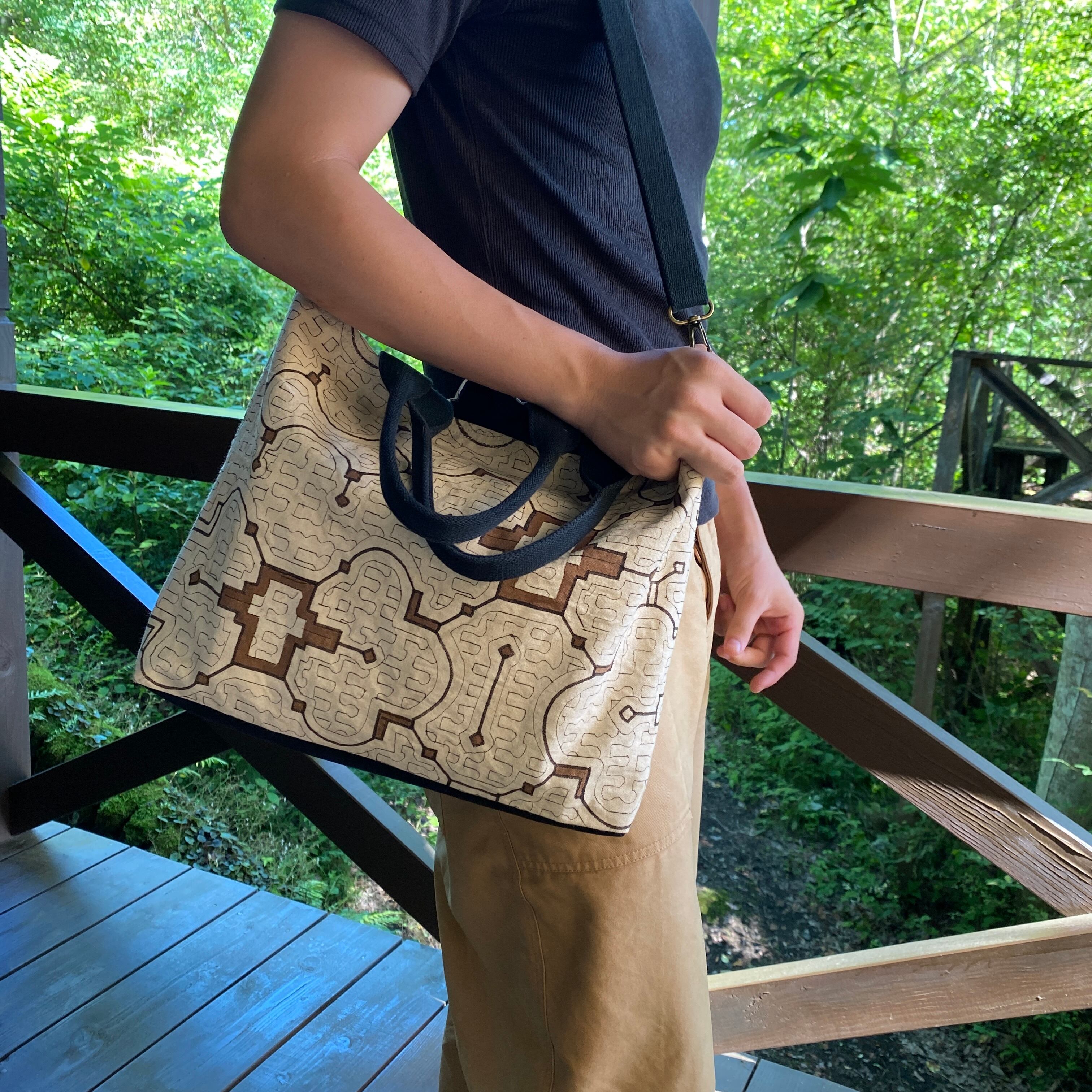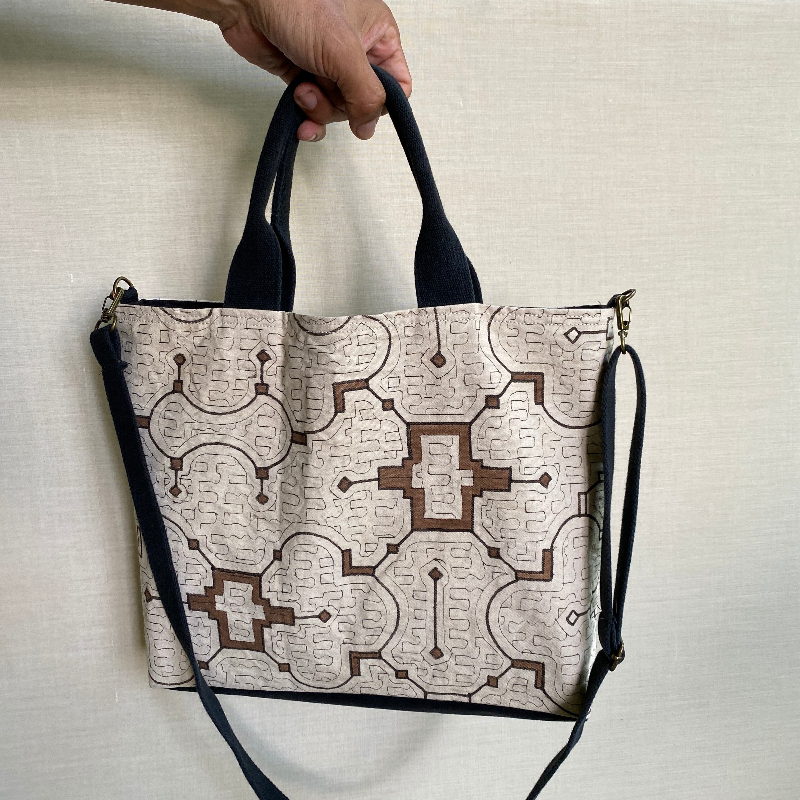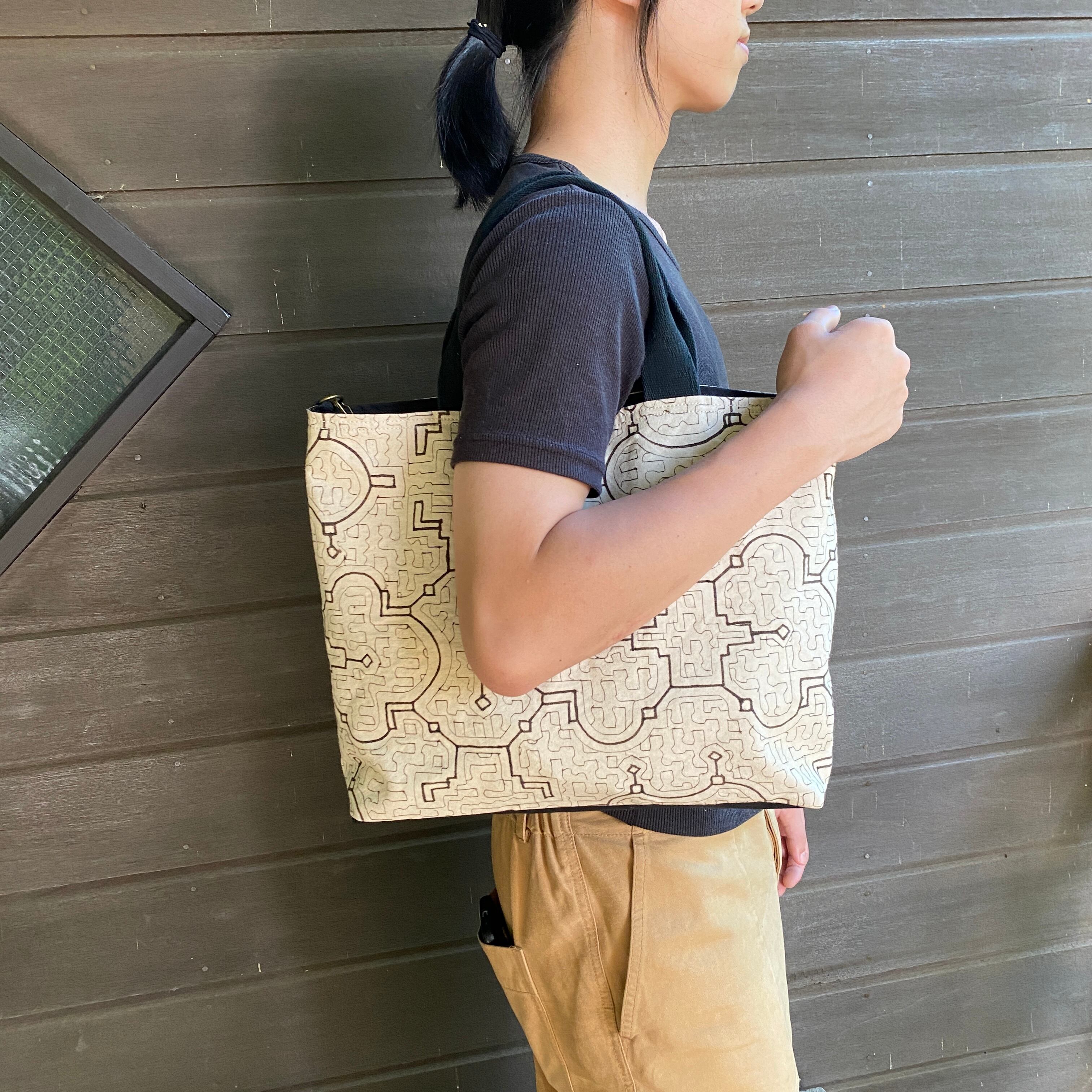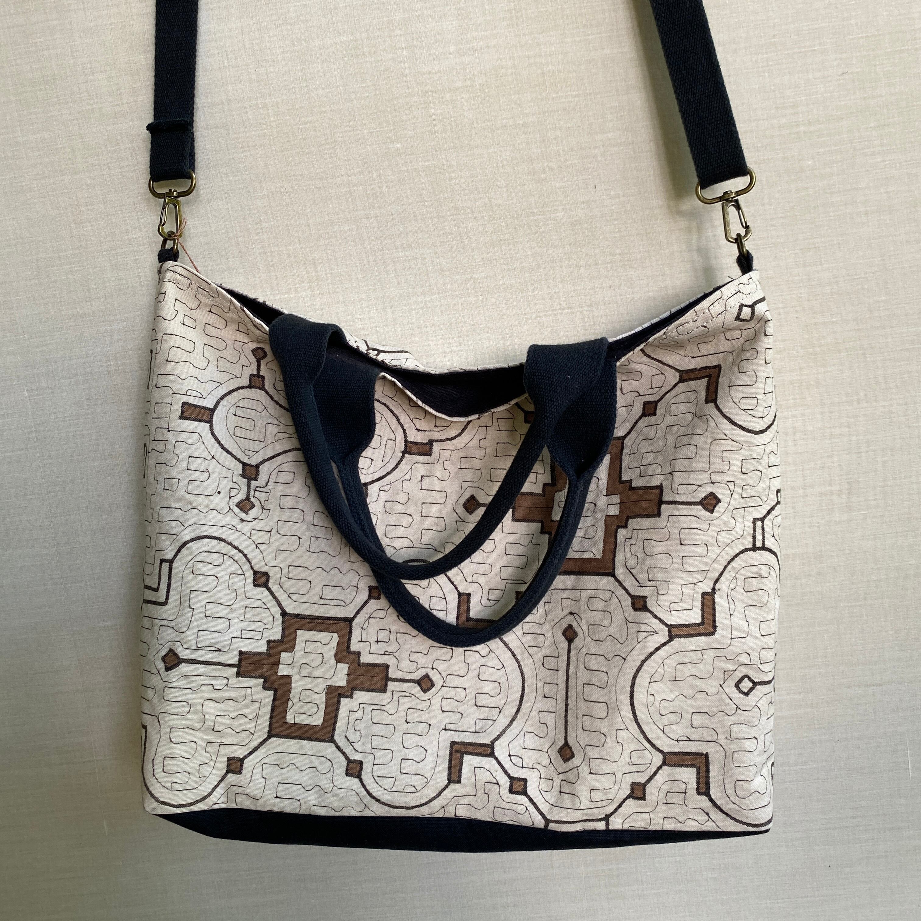 帆布泥染めトートショルダー中型 40x28x8cm シピボ族の泥染め 長さ調整ショルダー取り外し 軽いバッグ