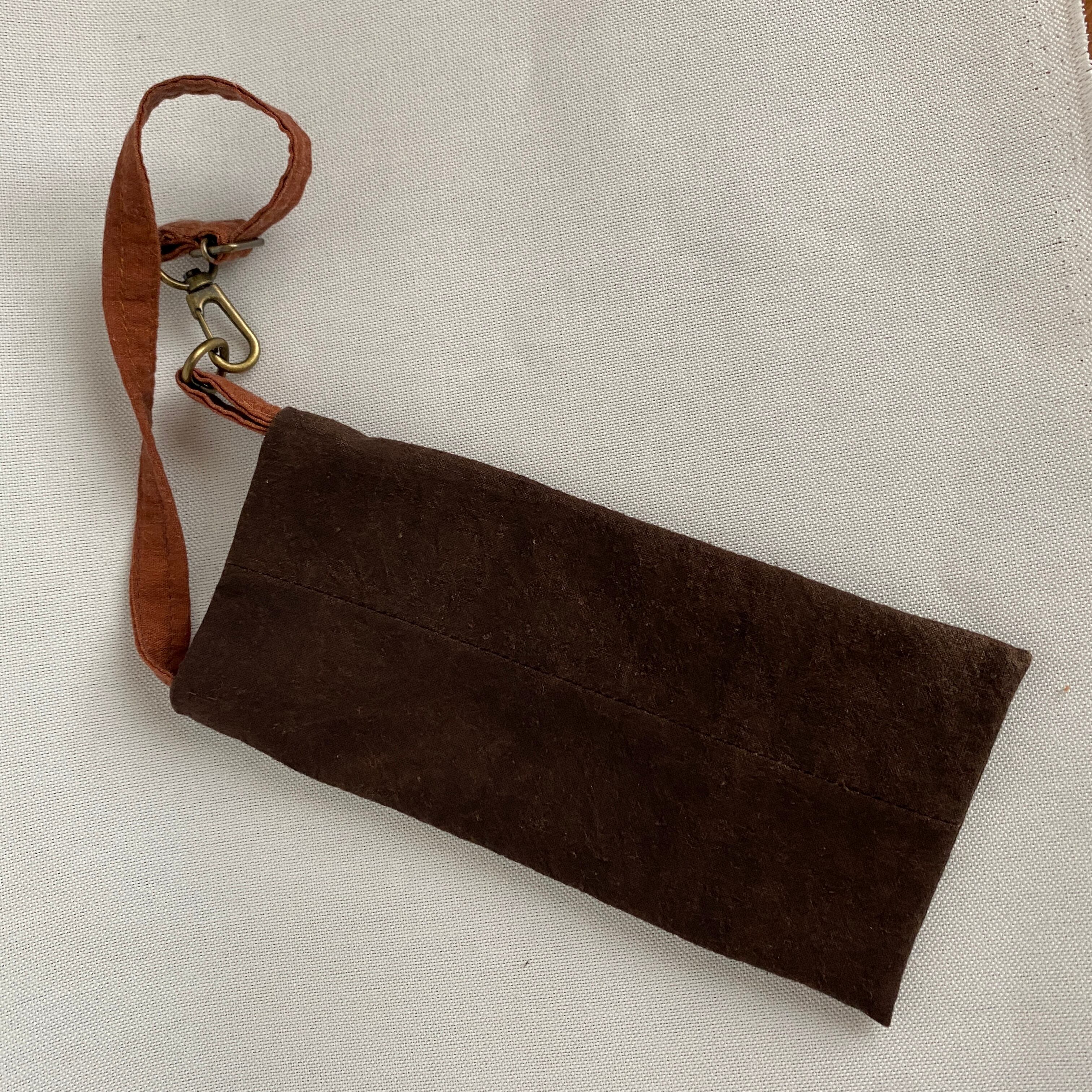 茶染めのストラップ紐は長さ調整可能です。