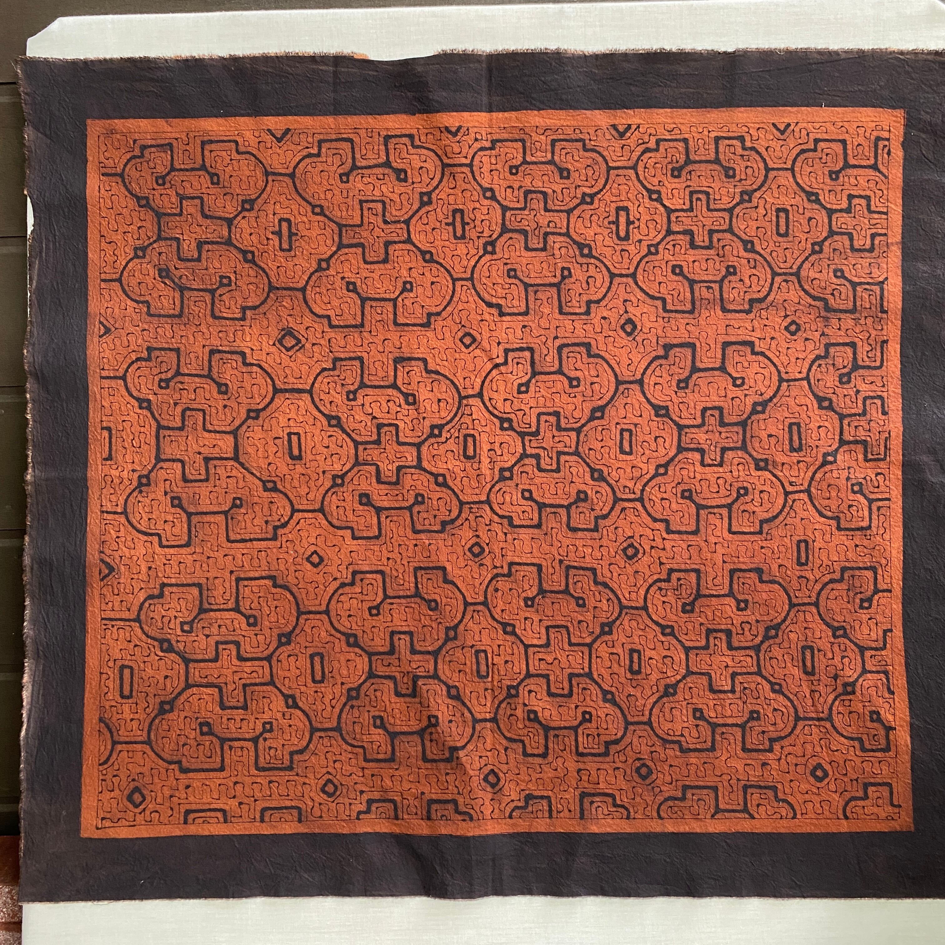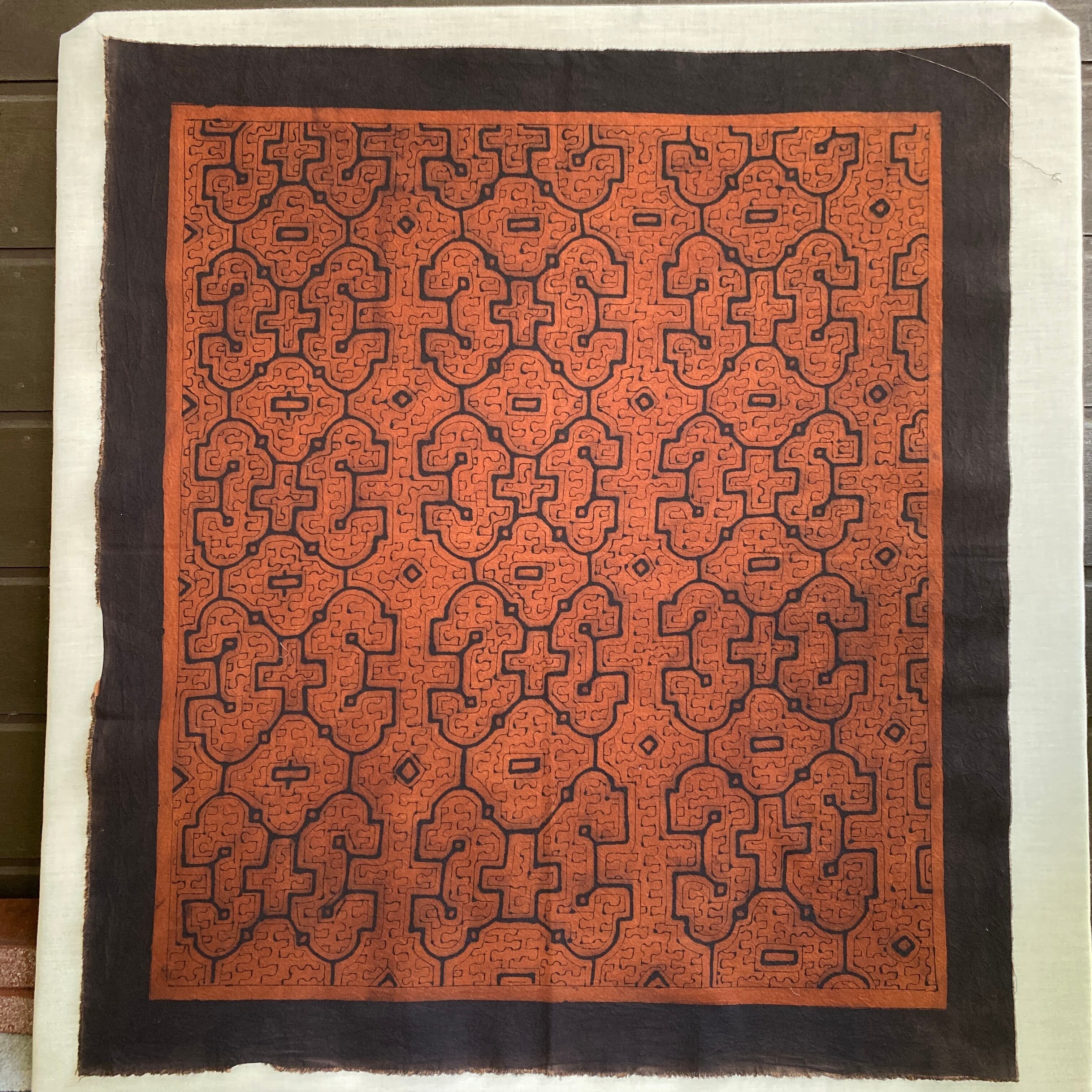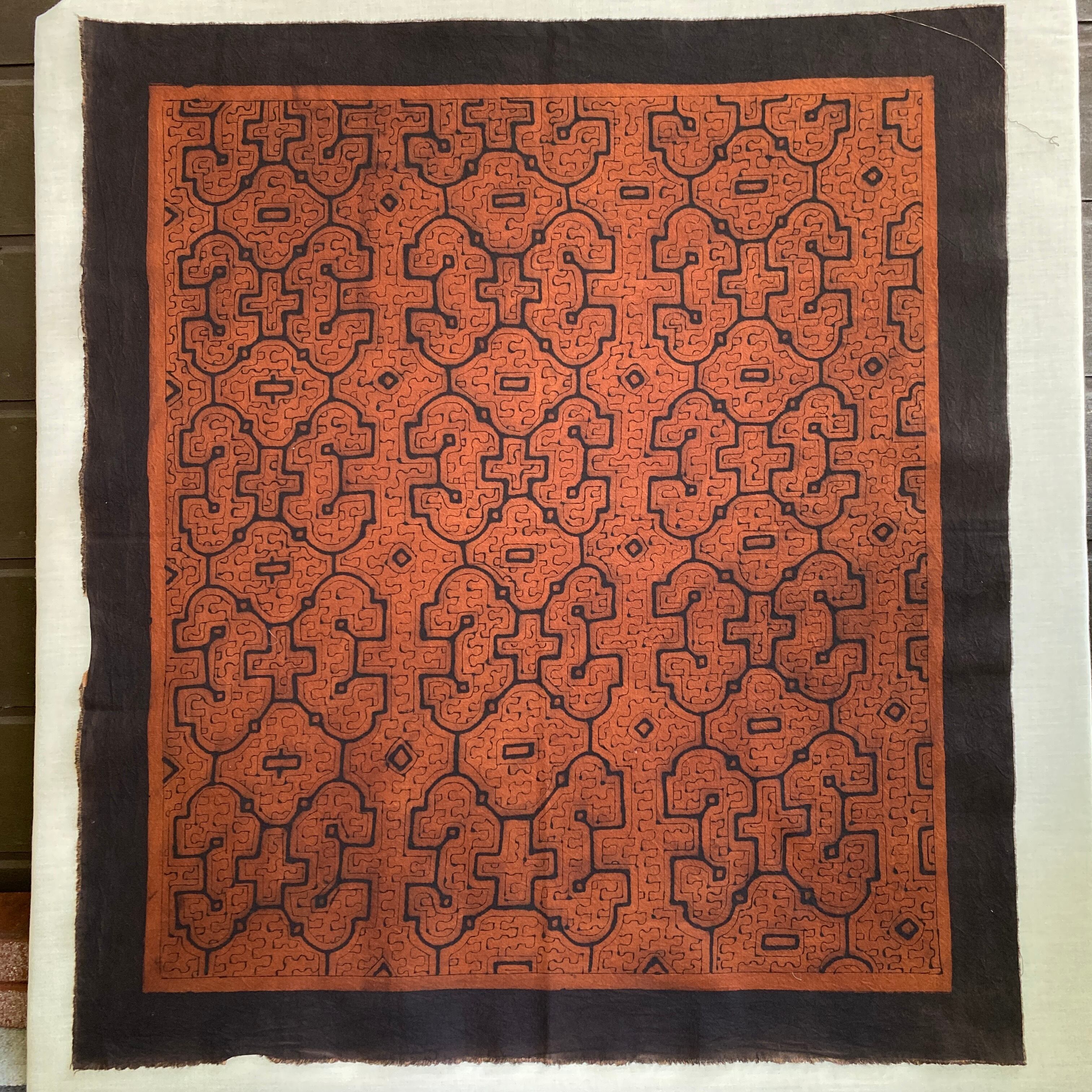 08中型茶 94x83cm シピボ族の泥染め 先住民族 タペストリー 草木染め風呂敷 民芸布 幾何学模様の布 Shipibo | アマゾン屋 シピボ族の泥染めとバッグと雑貨