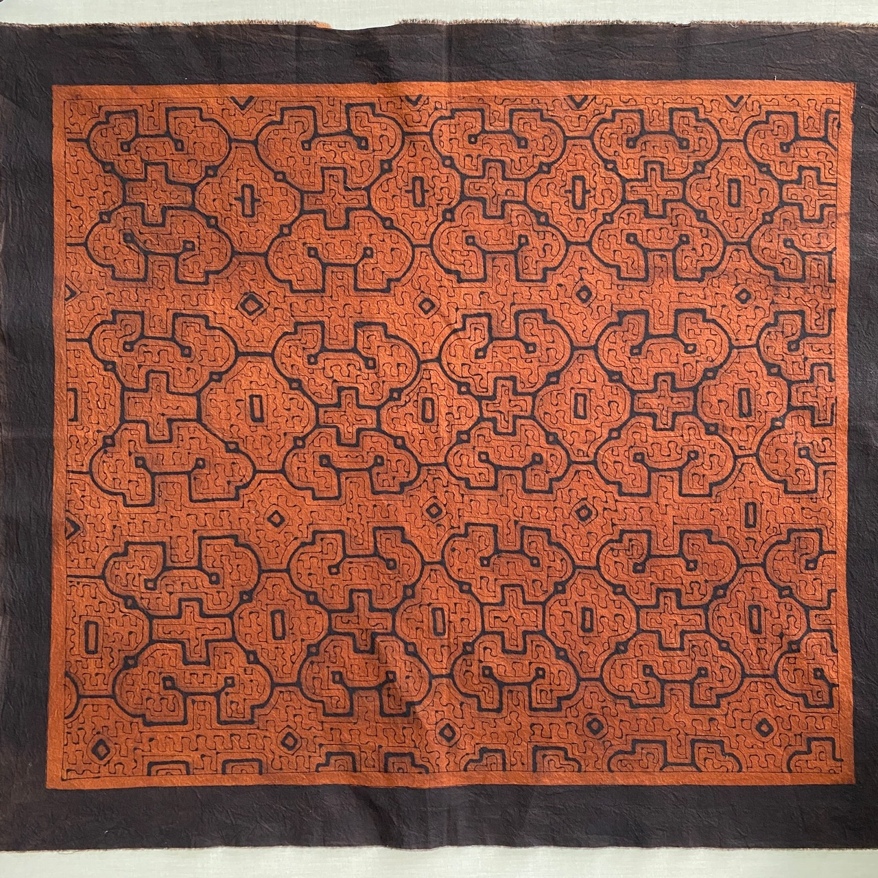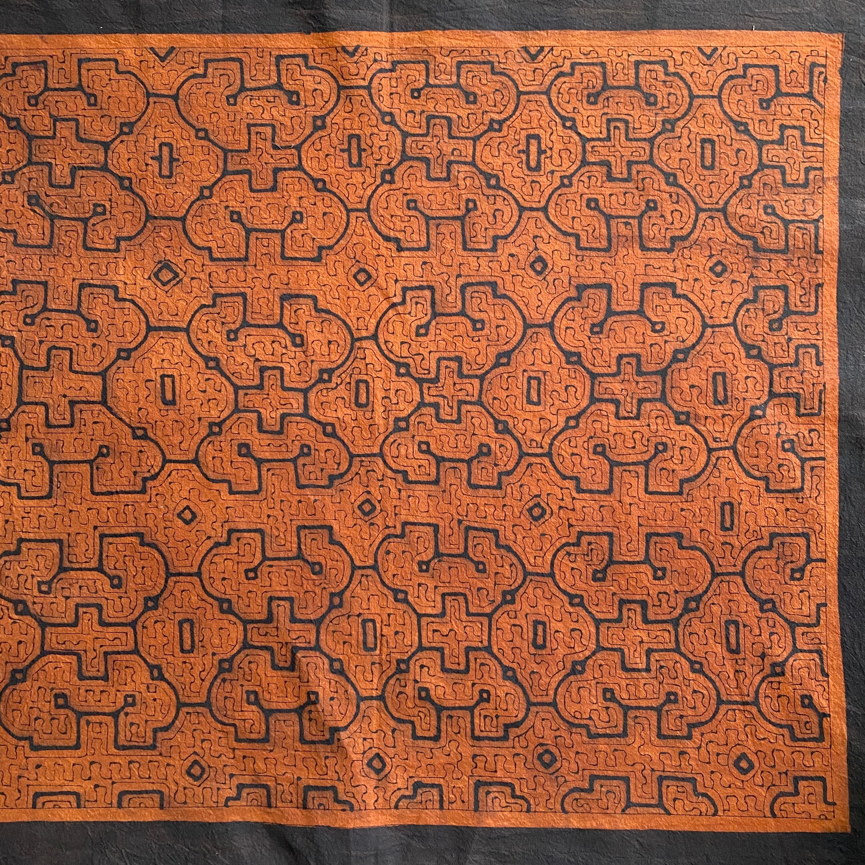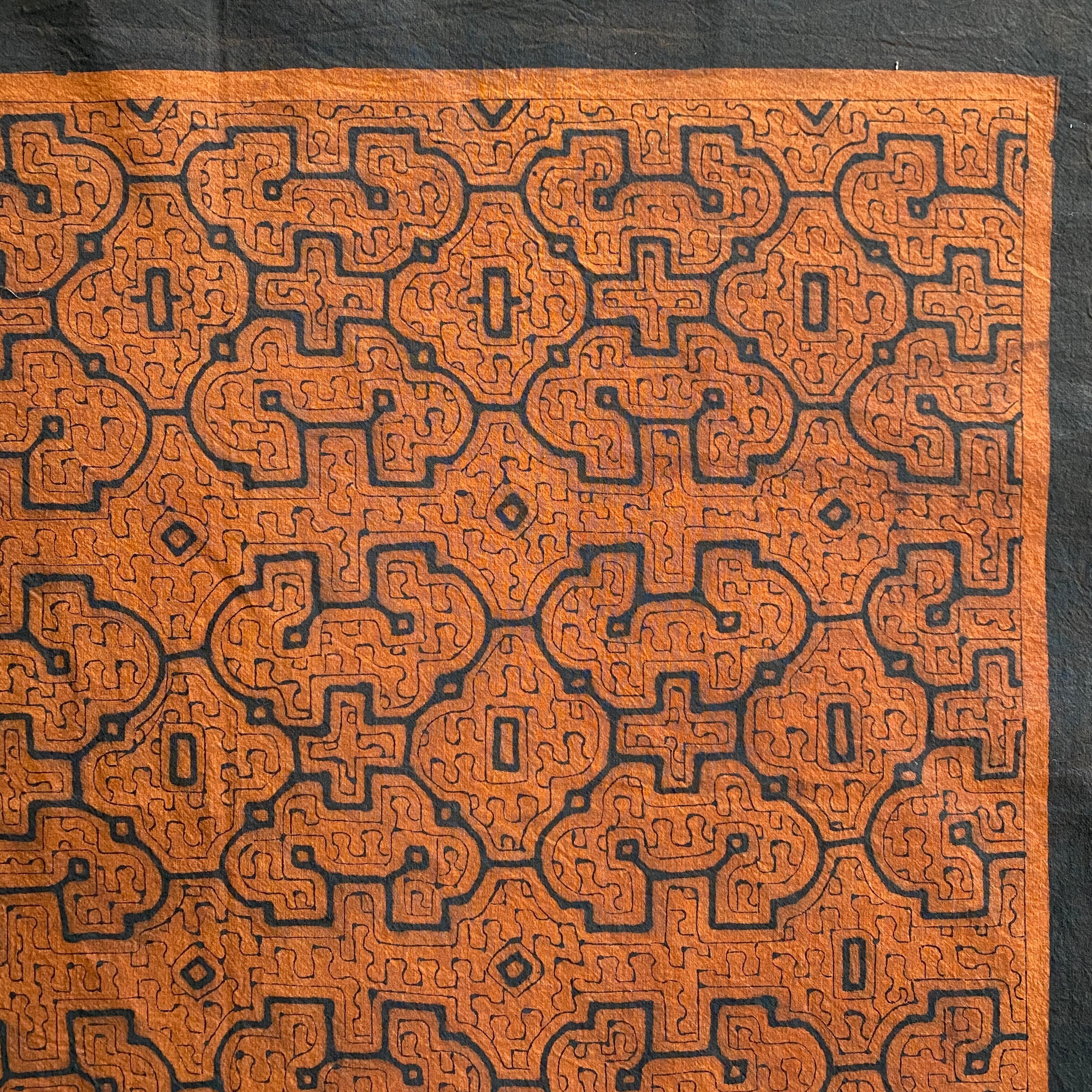 08中型茶 94x83cm シピボ族の泥染め 先住民族 タペストリー 草木染め風呂敷 民芸布 幾何学模様の布 Shipibo | アマゾン屋 シピボ族の泥染めとバッグと雑貨
