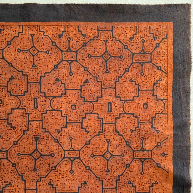 03中型茶94x83cm シピボ族の泥染め 先住民族 タペストリー 草木染め風呂敷 民芸布 幾何学模様の布 Shipibo | アマゾン屋 シピボ族の泥染めとバッグと雑貨