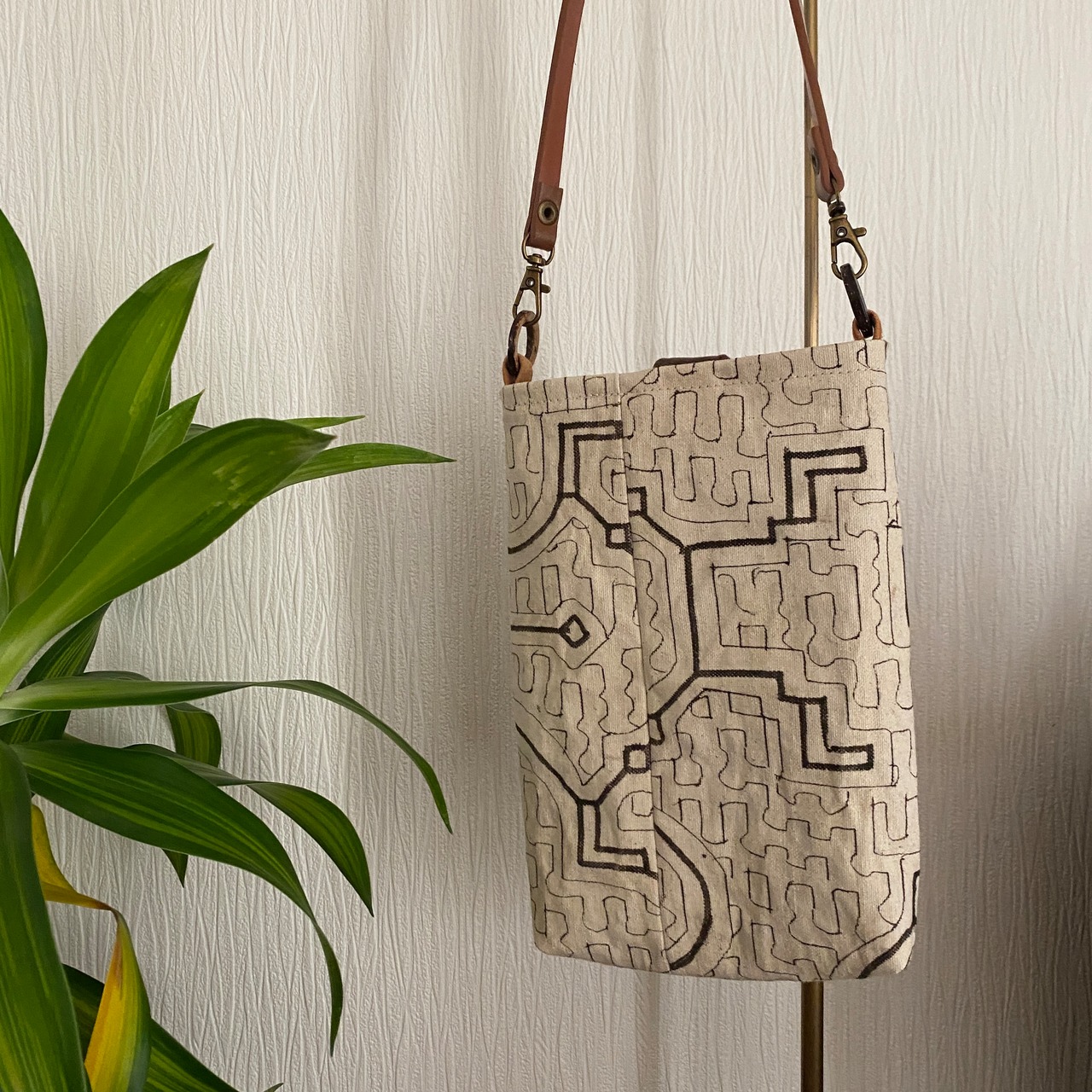 ポシェット67 携帯用ショルダー シピボ族の泥染め 薄い帆布 | アマゾン屋 シピボ族の泥染めとバッグと雑貨