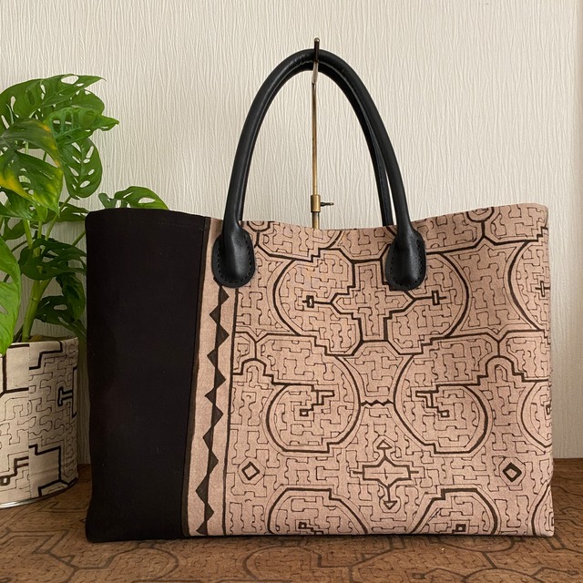 アマゾンの泥染めは、先住民族シピボ族の伝統工芸で、フリーハンドの幾何学模様を染める、希少価値の高い手工芸です。この布を使ってオーナー(AYACHI S)がバッグや布雑貨を手作りしています。 貴重な伝統工芸を少しでも長く作り続けて欲しいという想いから続けている活動です。
