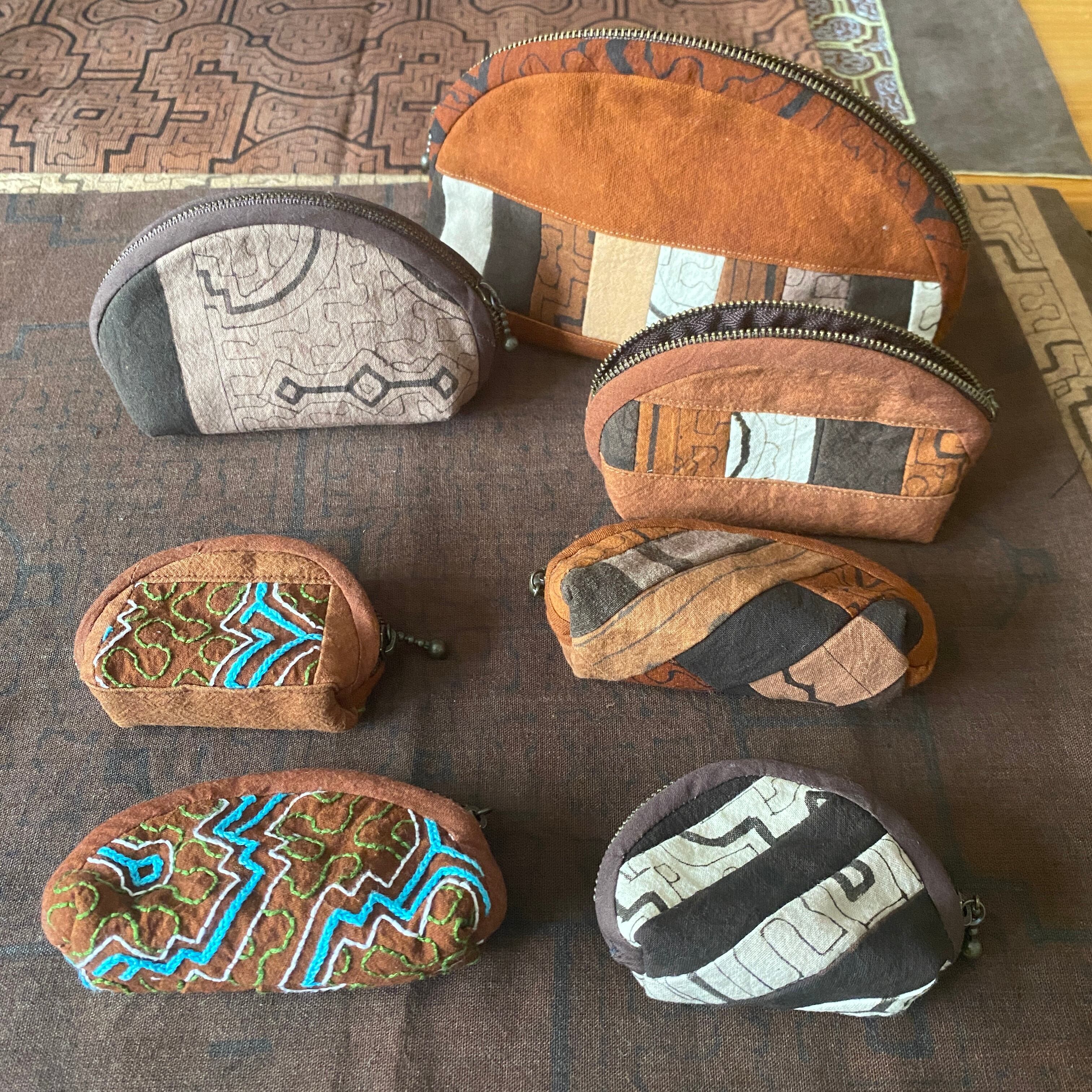 樹皮染めの濃い茶色にシピボ族の手刺繍の素材を贅沢にも小物に加工した、滅多に出せない希少品です。内布も現地で染めたナチュラルカラーで使い込むほど味が出そうです。