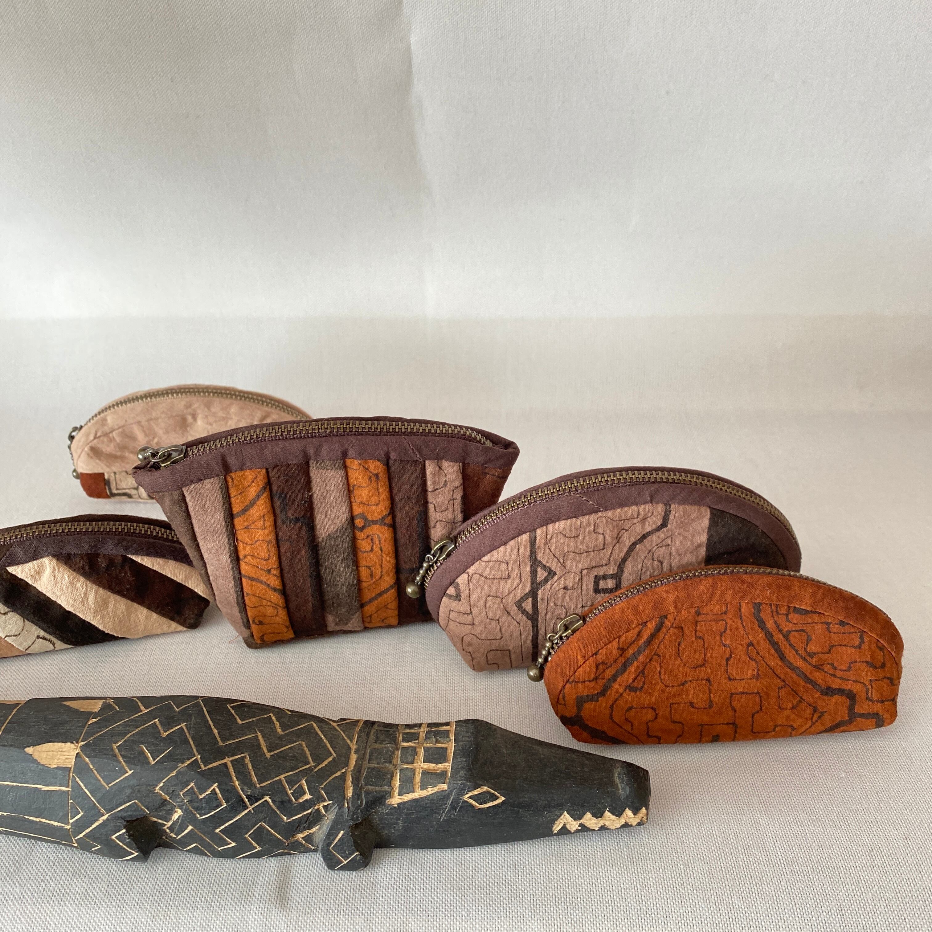 丸ポーチ56 茶 12.5cmx5cmx3.5cm シピボ族の泥染め