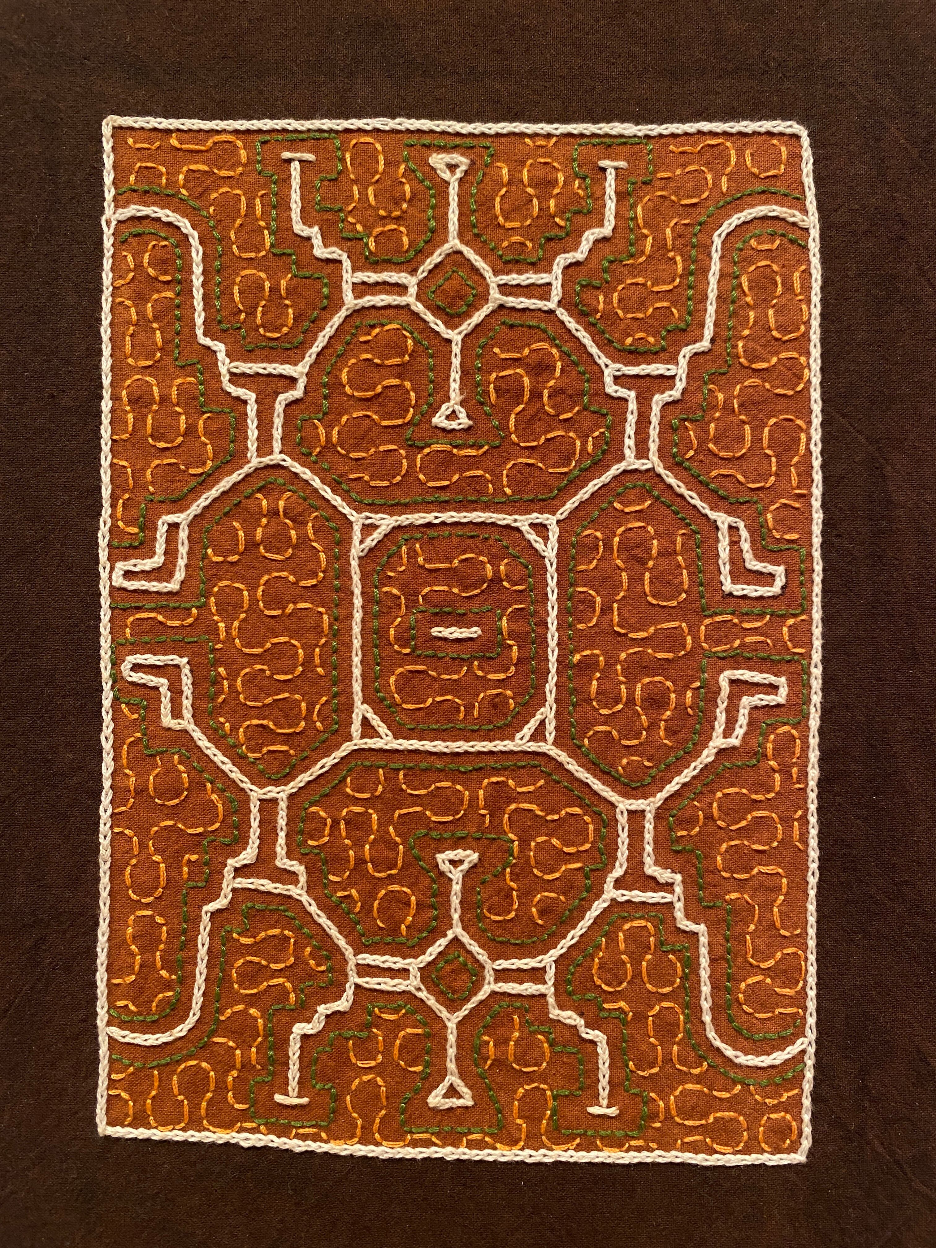 鑑賞用の特別に選抜した美しい刺繍のシリーズです。南米アマゾンの先住民シピボ族の女性による手刺繍です。小型サイズに特注したもの。
