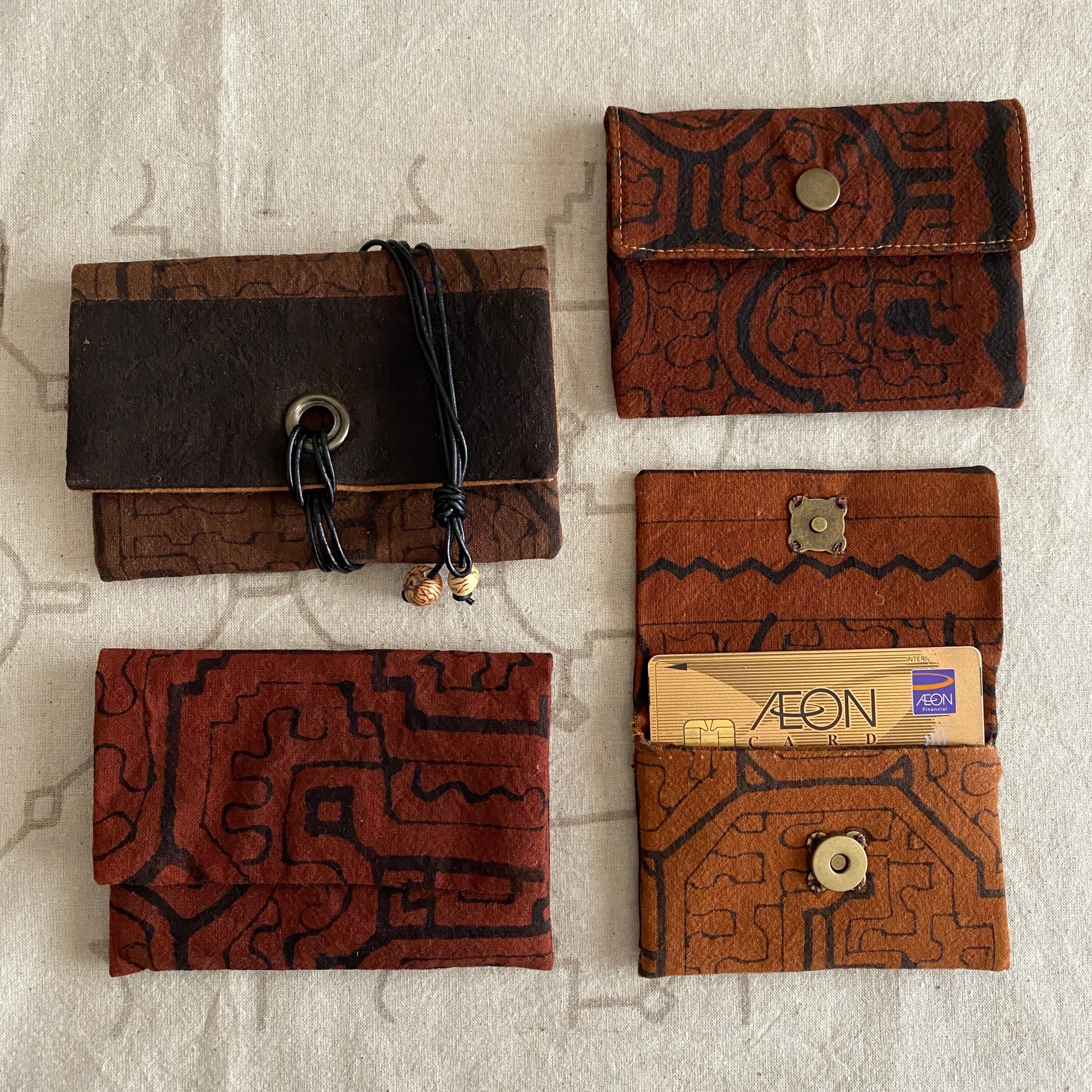 カードのサイズにぴったりで、軽くて柔らかく手に馴染みやすいマグネットボタンのケースです。シピボ族の泥染めの手描き模様を前面に使った素材が贅沢です。
