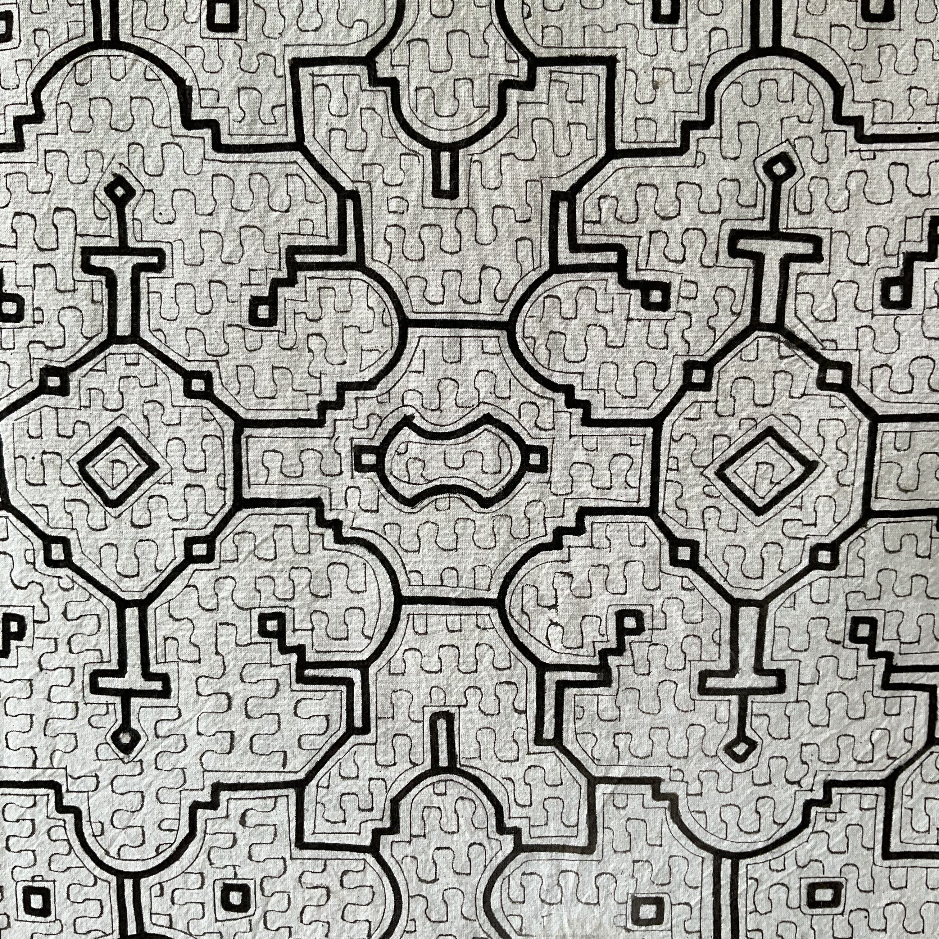 アマゾンの泥染めは、先住民族シピボ族の伝統工芸で、フリーハンドの幾何学模様を染める、希少価値の高い手工芸です。この布を使ってオーナー(AYACHI S)がバッグや布雑貨を手作りしています。 貴重な伝統工芸を少しでも長く作り続けて欲しいという想いから続けている活動です。