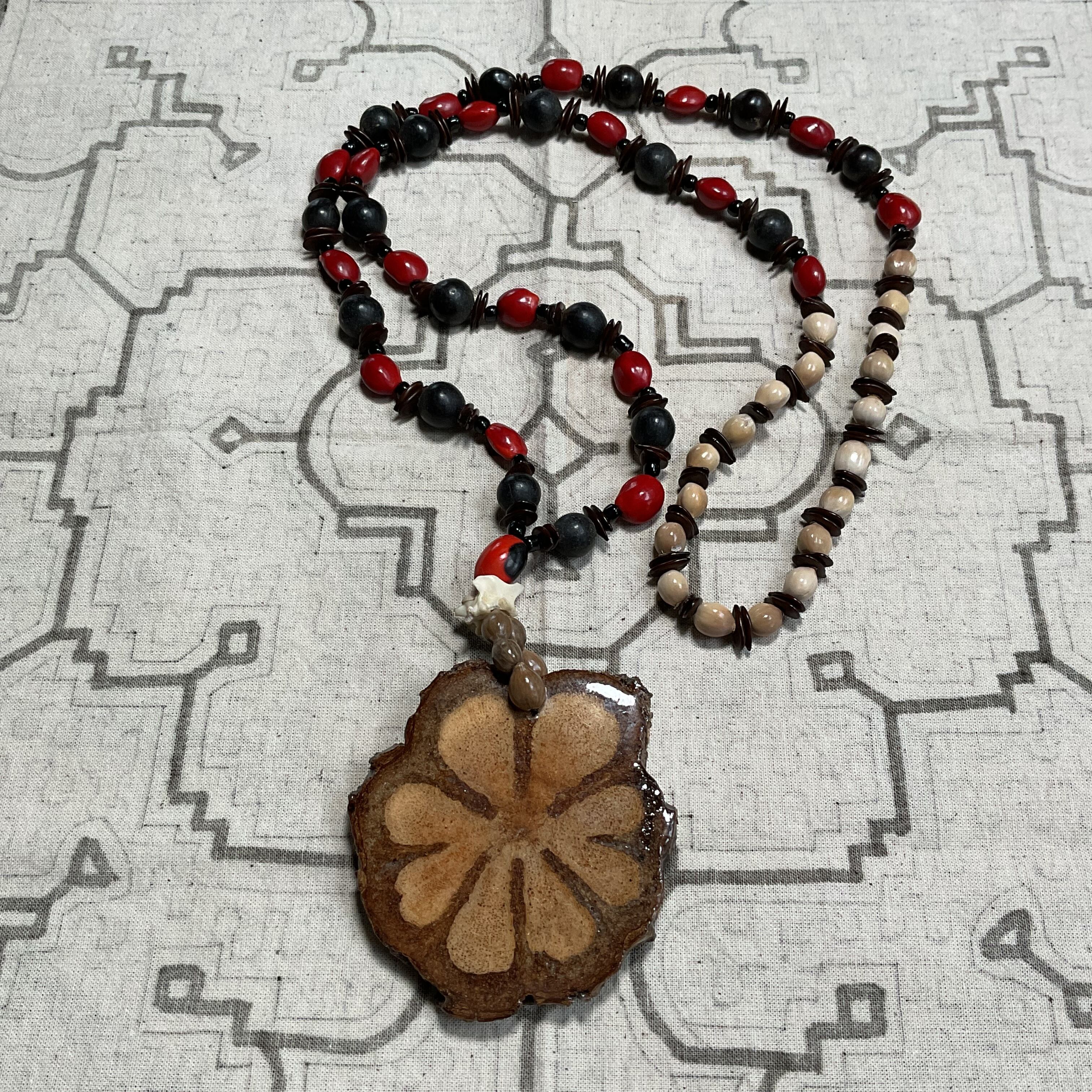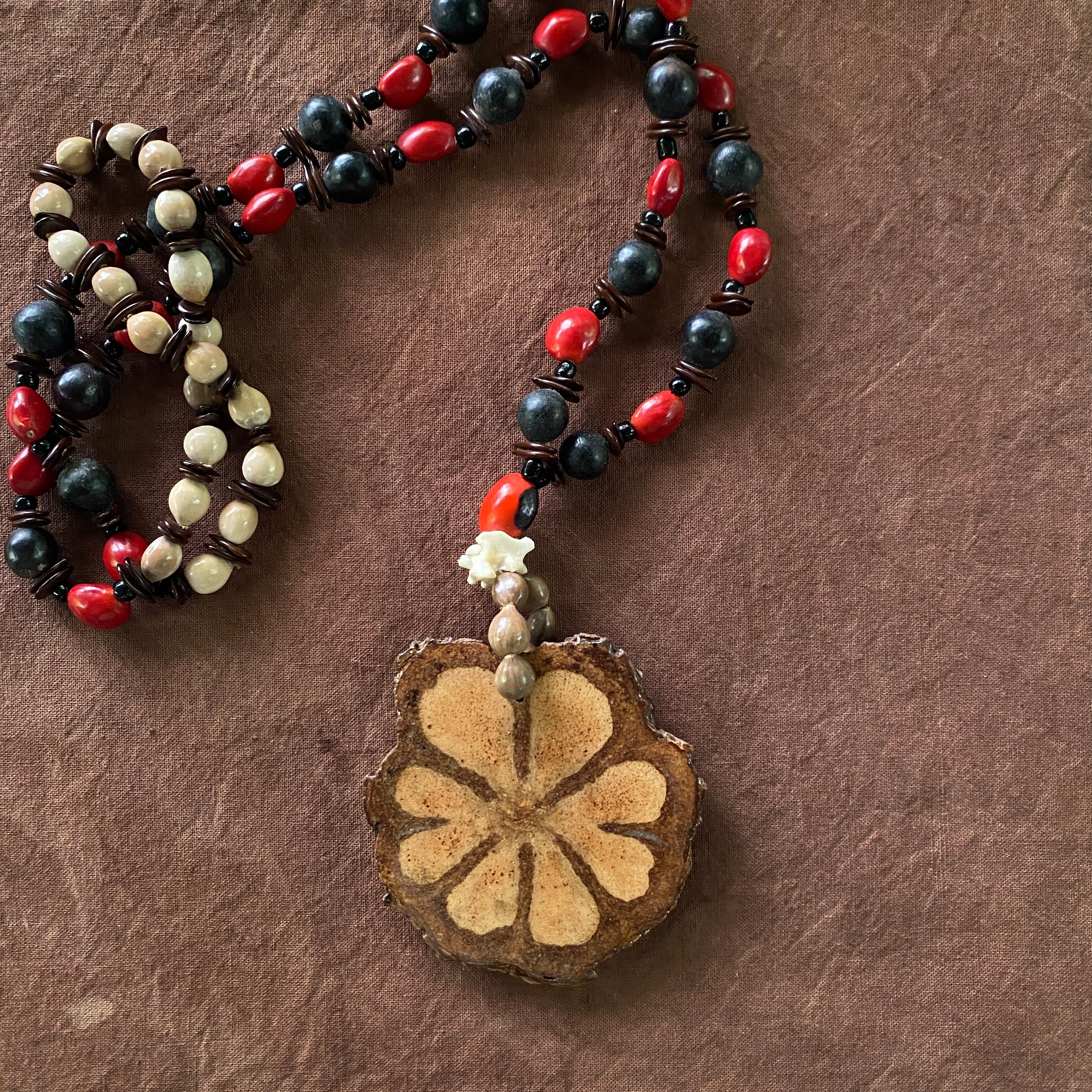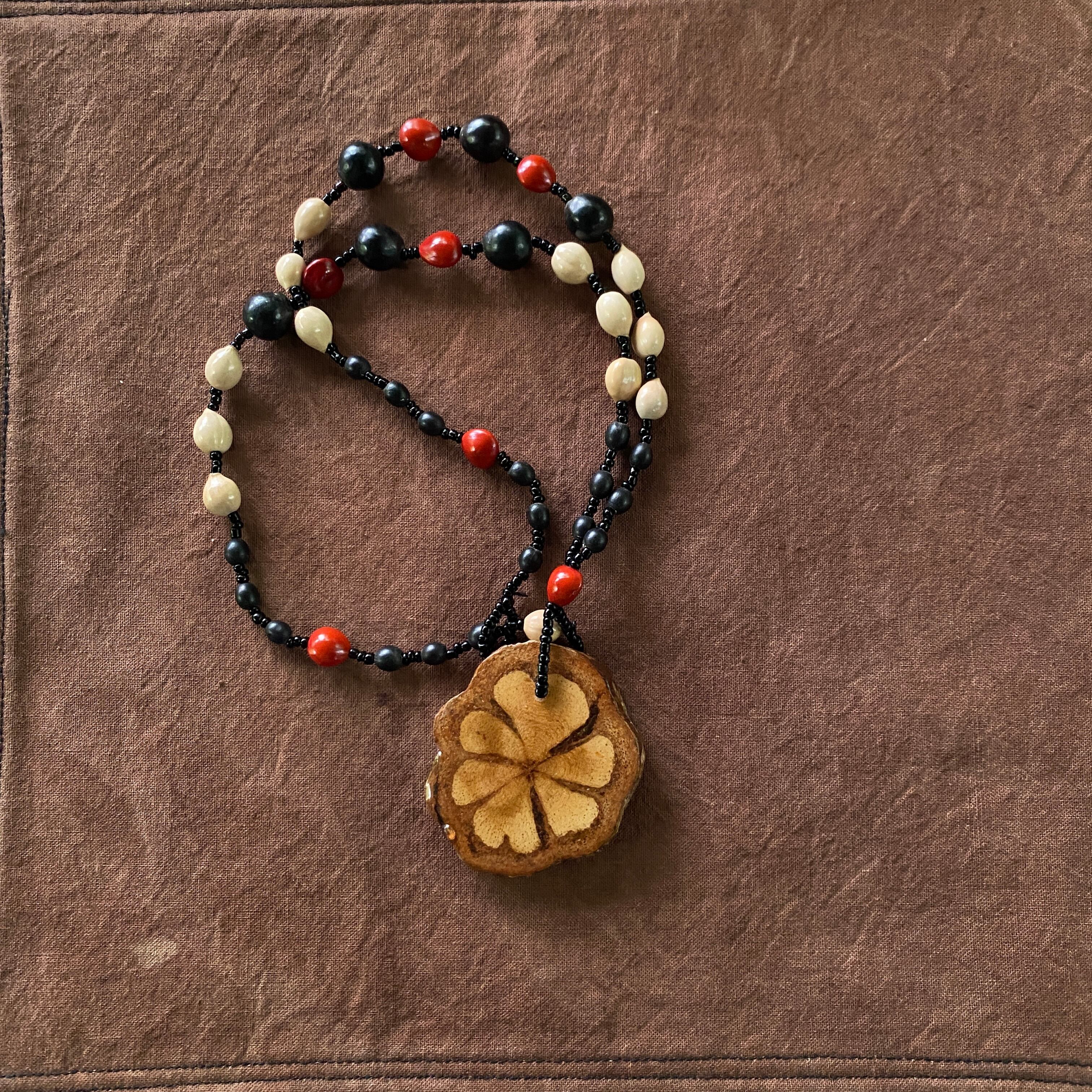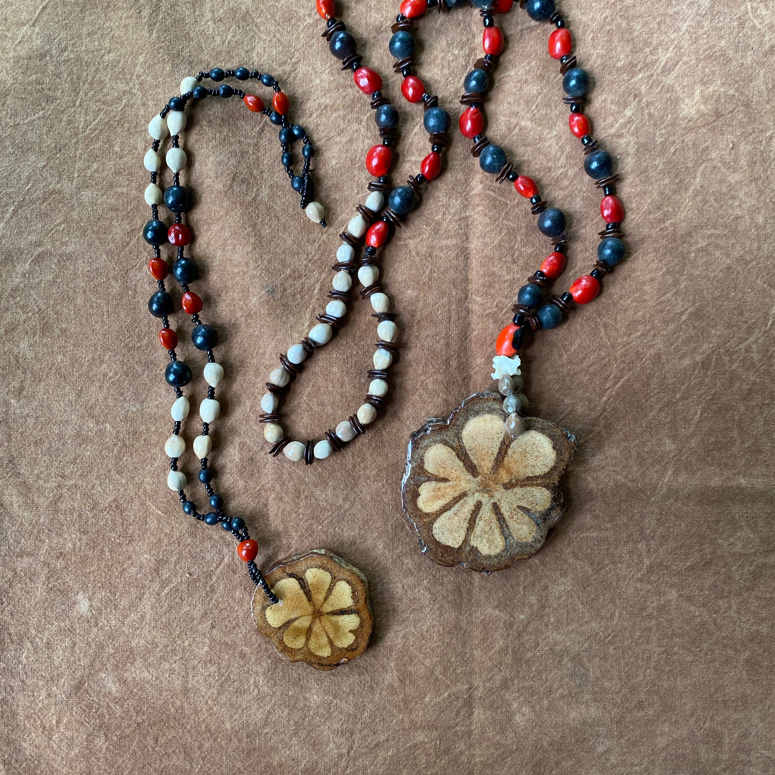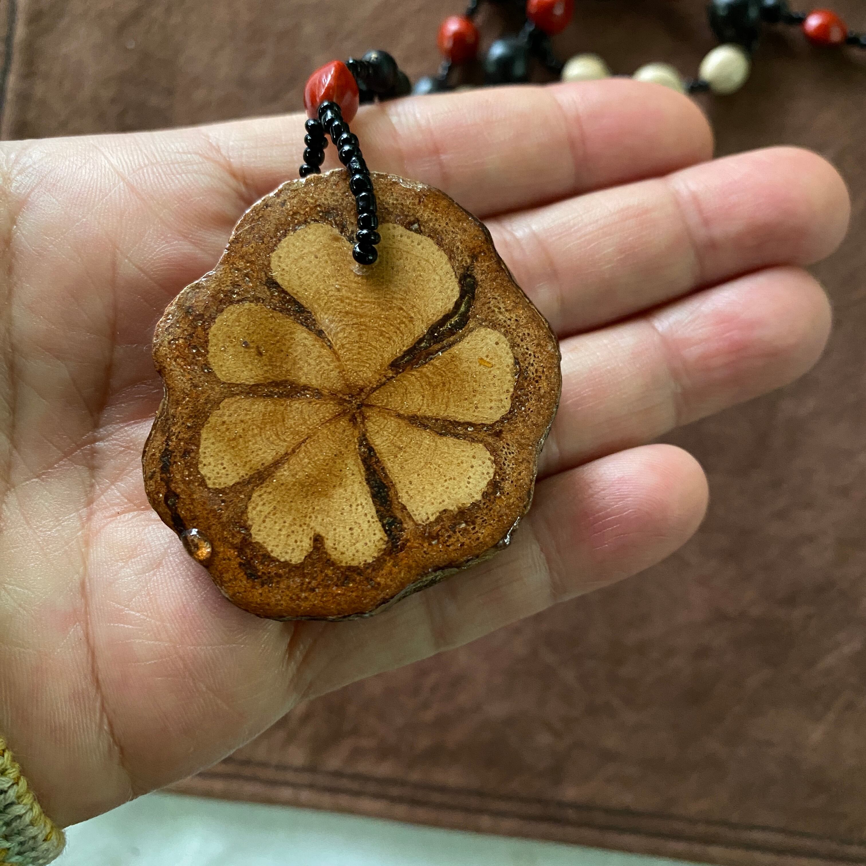 アヤワスカペンダント 切り株スライス 木の実のネックレス アナコンダの骨 スピリチュアル シャーマングッズ