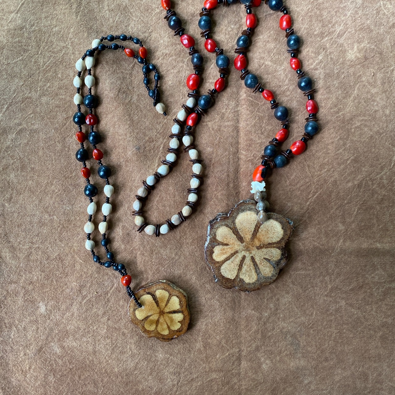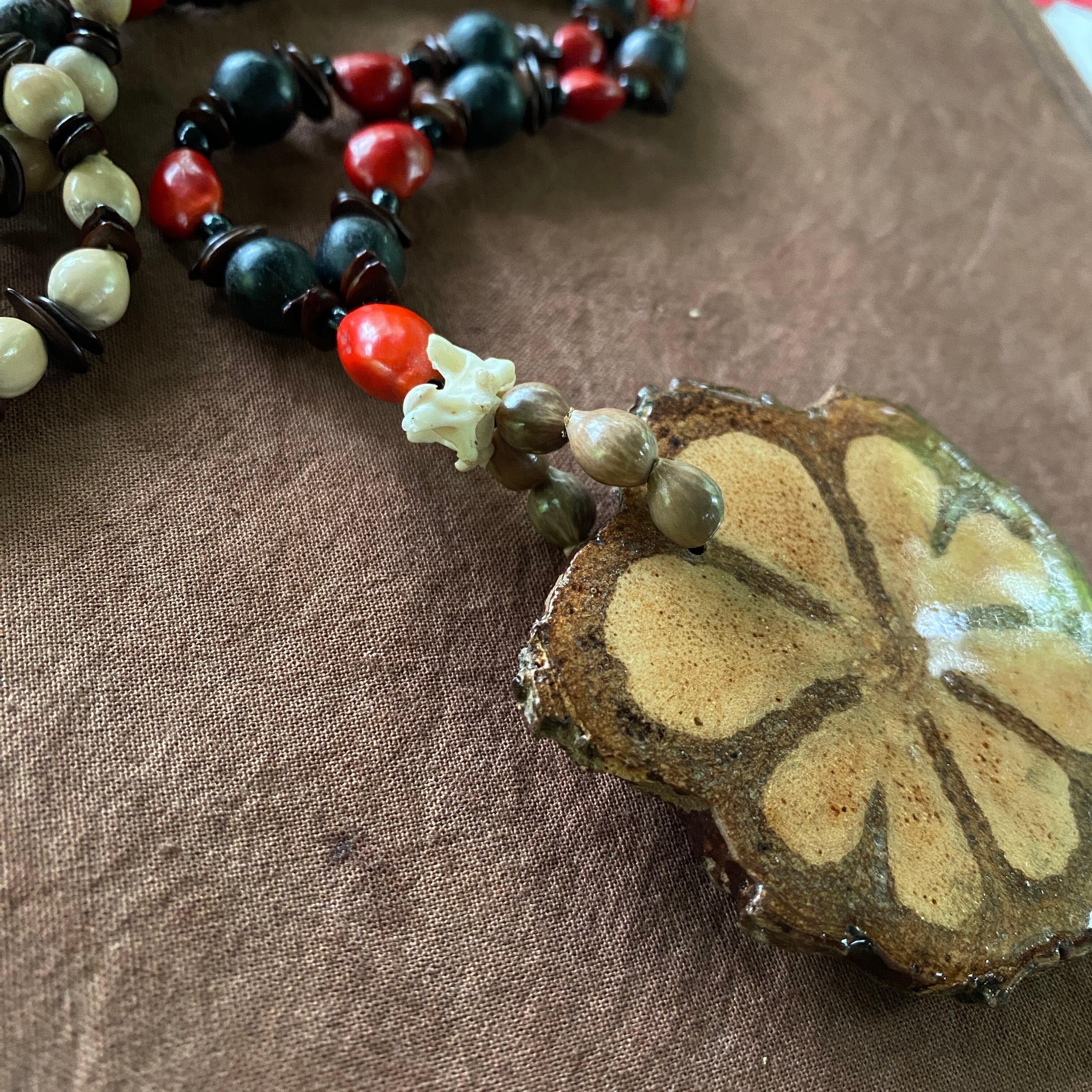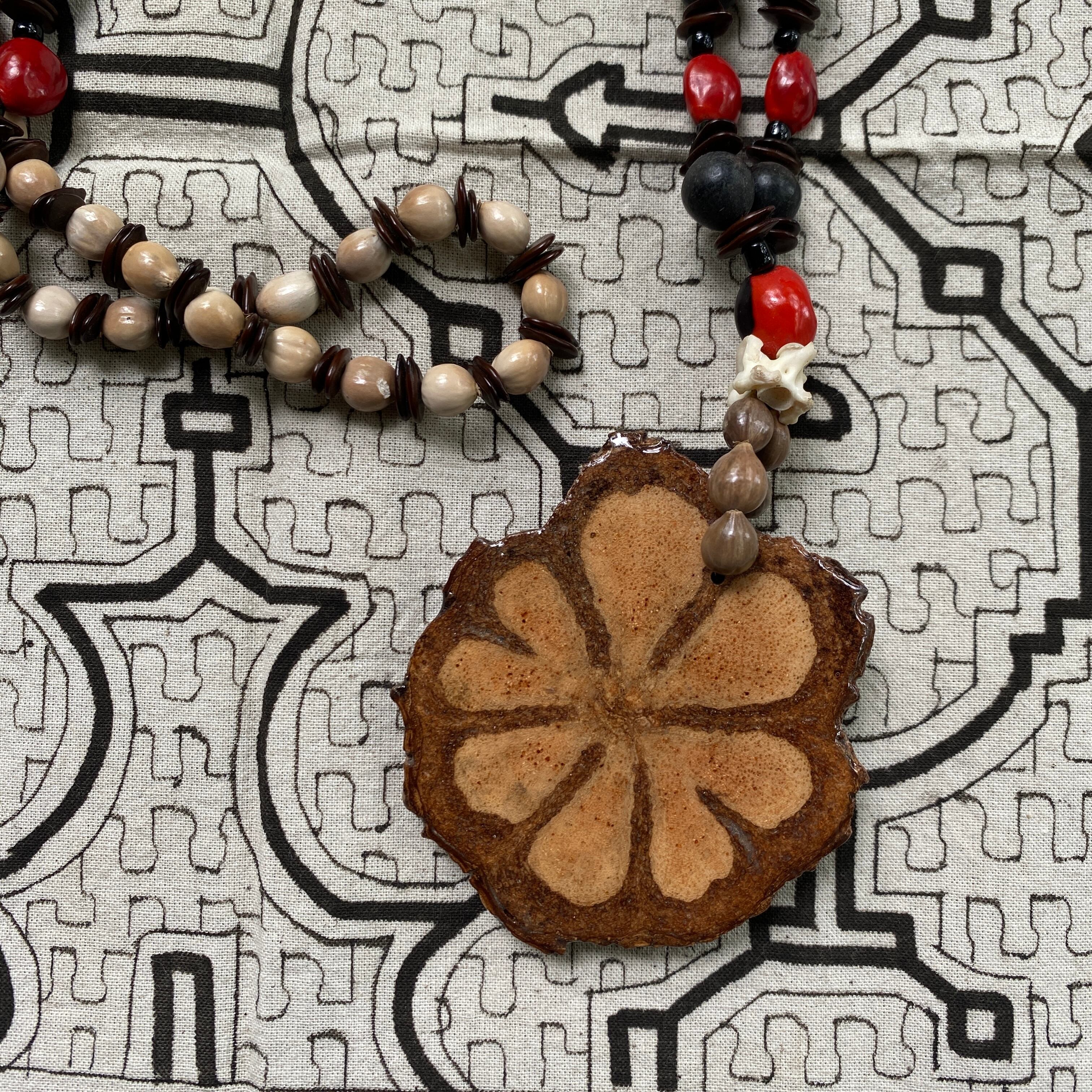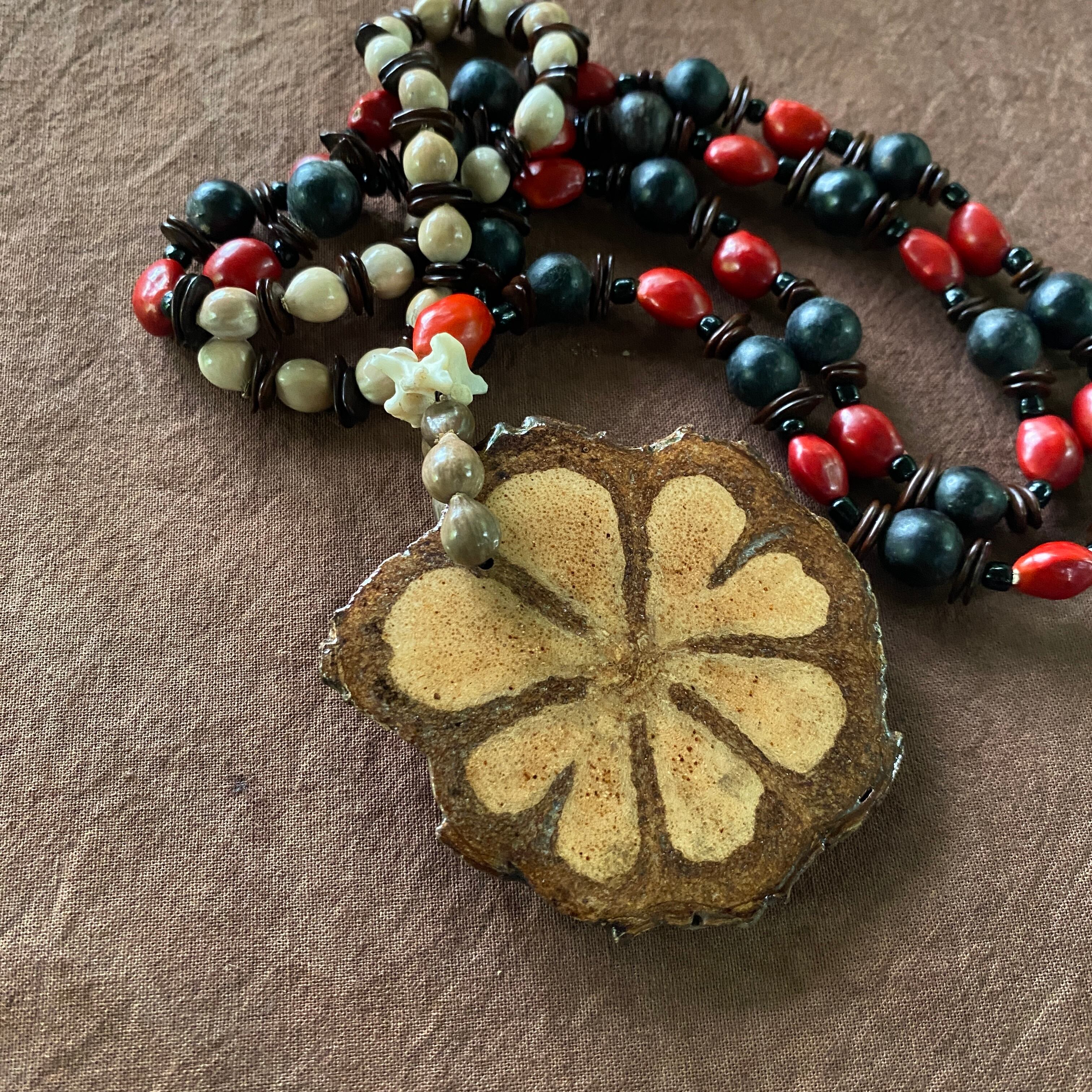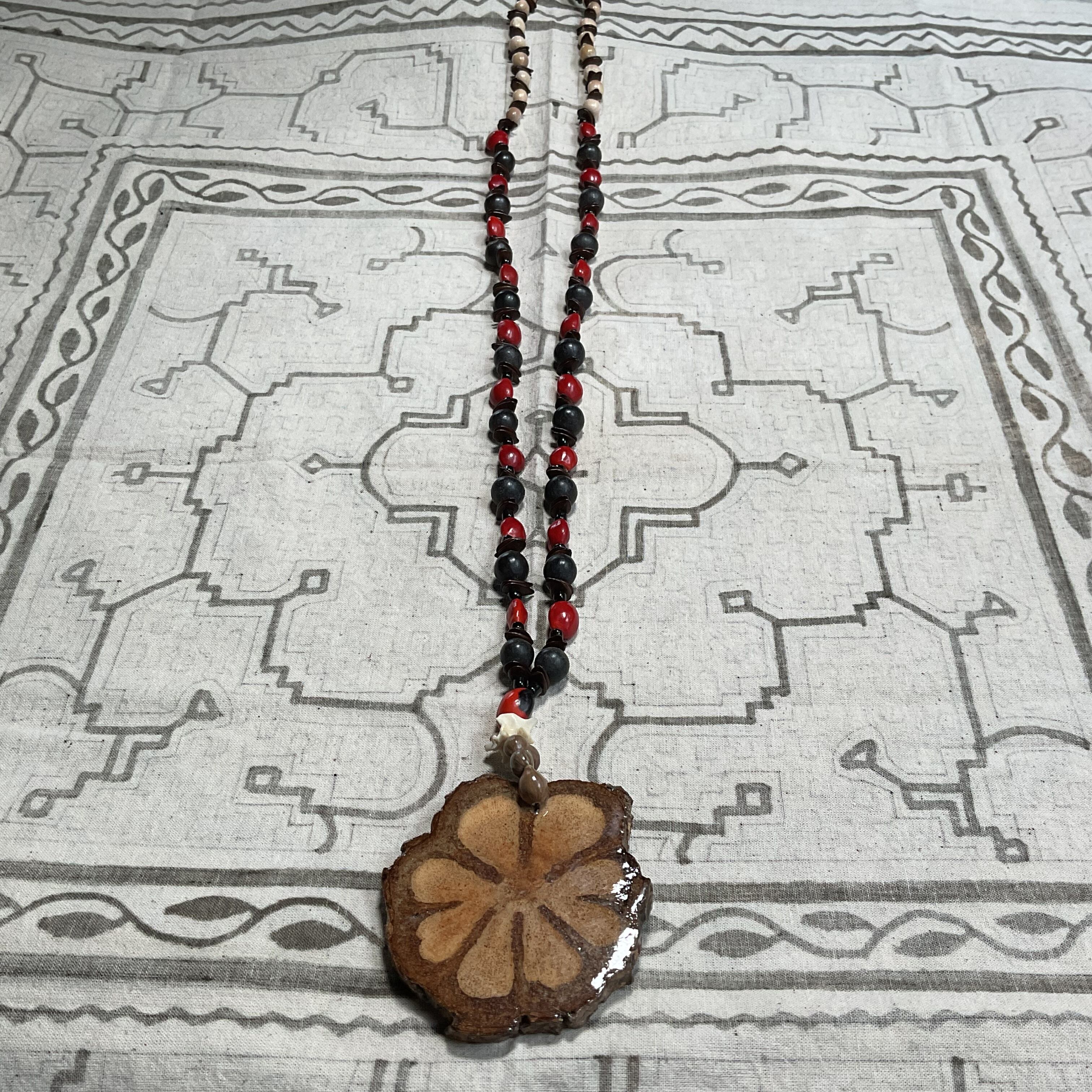 アヤワスカペンダント 切り株スライス 木の実のネックレス アナコンダの骨 スピリチュアル シャーマングッズ