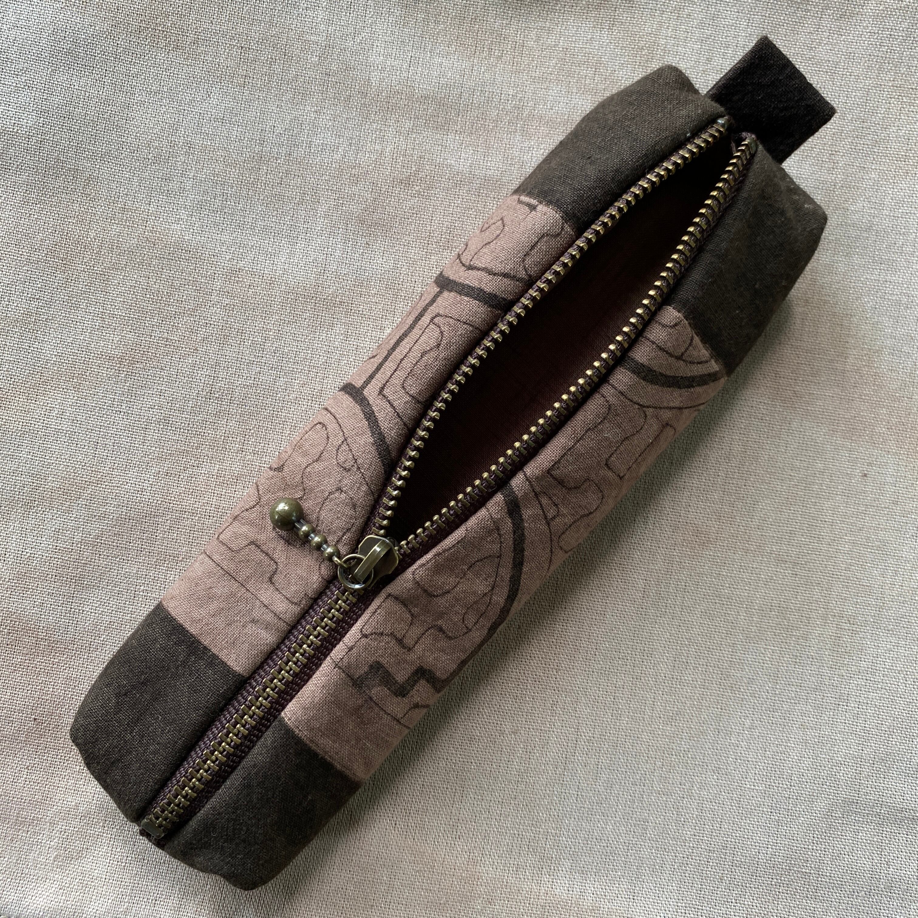 シピボ族の女性たちが染めた泥染め布を生かすため、アマゾン屋が日本で、ひとつひとつの布に合わせた小物を手作りしています。