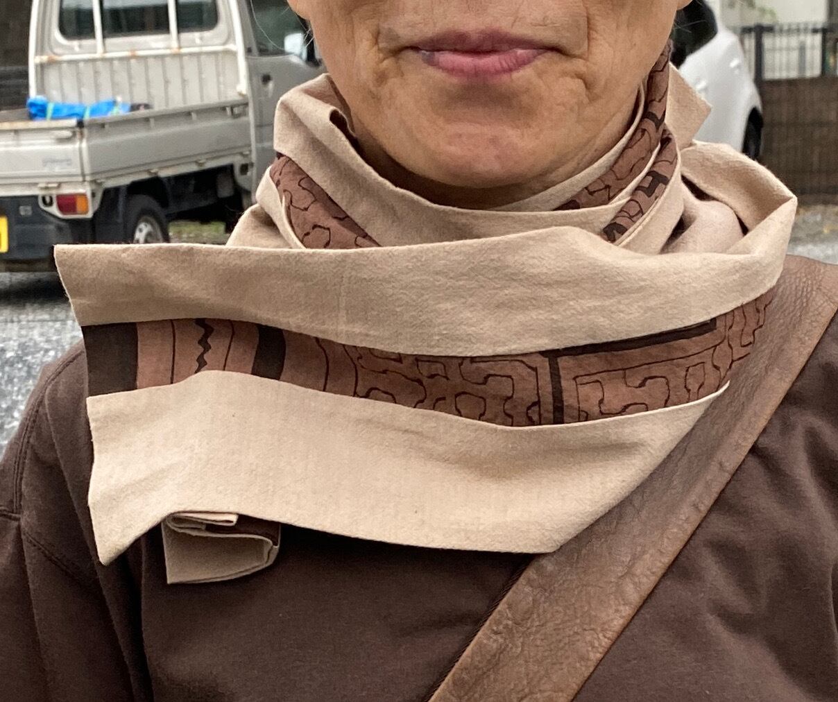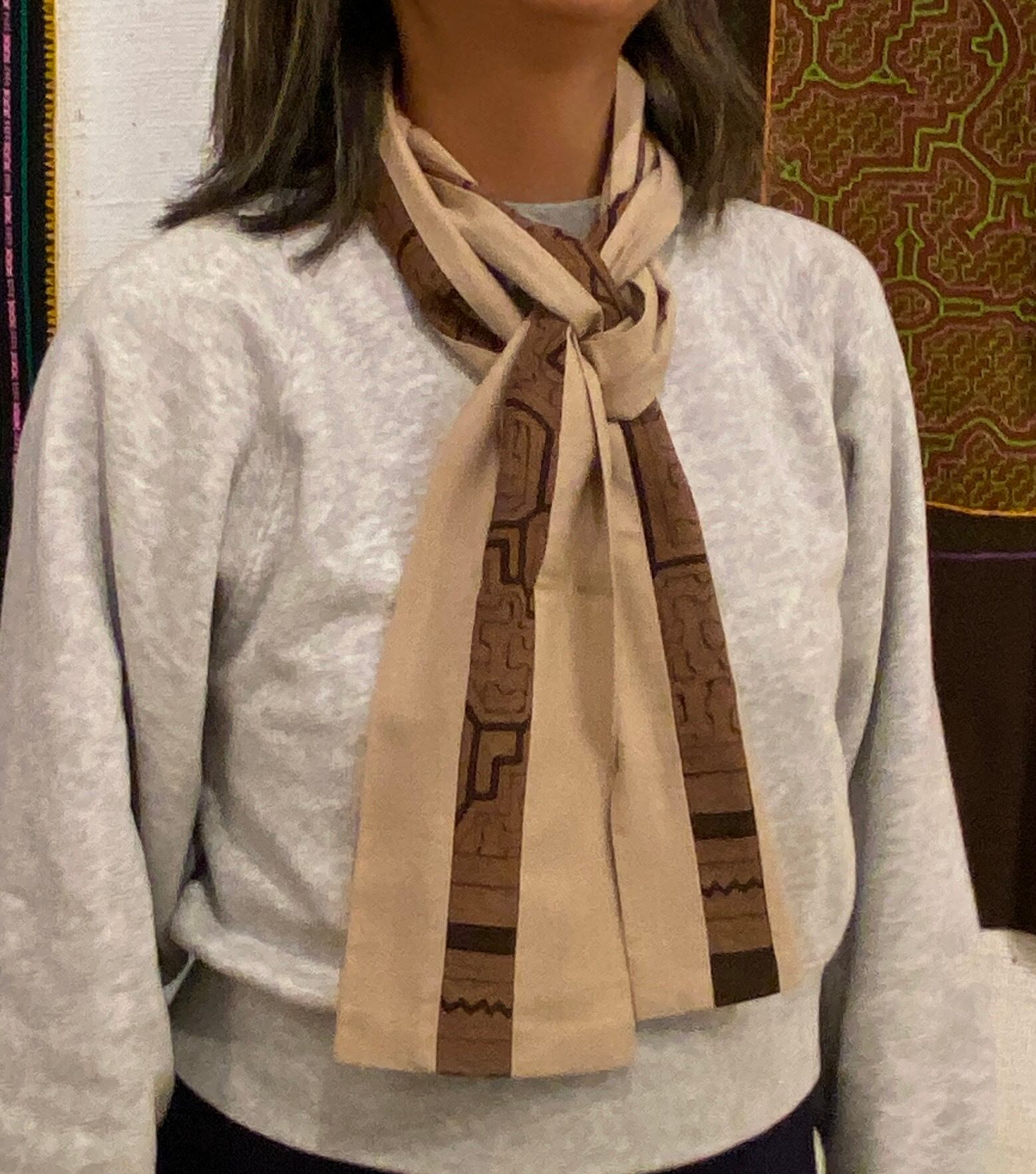 アマゾンの泥染めは、先住民族シピボ族の伝統工芸で、フリーハンドの幾何学模様を染める、希少価値の高い手工芸です。この布を使ってオーナー(AYACHI S)がバッグや布雑貨を手作りしています。 貴重な伝統工芸を少しでも長く作り続けて欲しいという想いから続けている活動です。