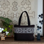 刺繍は純白の一色で泥染めの深い黒にスッキリと映えます。硬い芯により本体はしっかりしています。