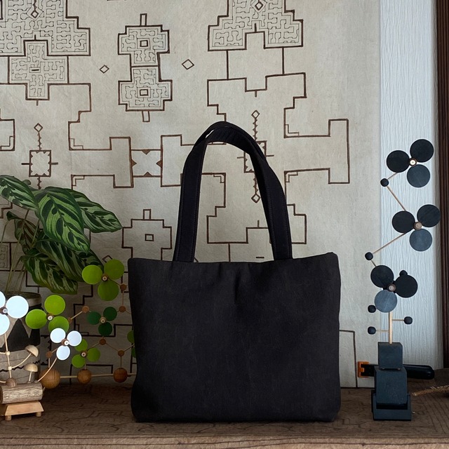 シピボバッグ 泥染め黒に白刺繍 32.5x22x6cm マグネットホック シンプル